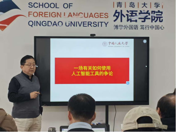 围绕“ChatGPT时代,学生该怎么学”以及“教师个人该如何发展”等关键议题,郭英剑教授提出了系统性见解。他引导学生思考如何有效利用AI工具提升语言学习效率,同时坚守批判性思维与人文素养的培养;同时,也为外语教师如何重新定位教学角色、实现专业发展提供了切实的路径指引。通过对这些关键问题的层层剖析,他为现场师生勾勒出外语学科在技术浪潮下的发展图景。