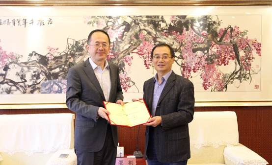 10月12日上午,学校在办公楼接待室举行仪式,聘任教育部高等学校外语专业教学指导委员会副主任委员、北京外国语大学副校长贾文键教授为我校客座教授。副校长邵彬出席仪式并代表学校向贾文键颁发聘书。人力资源处、美女自慰