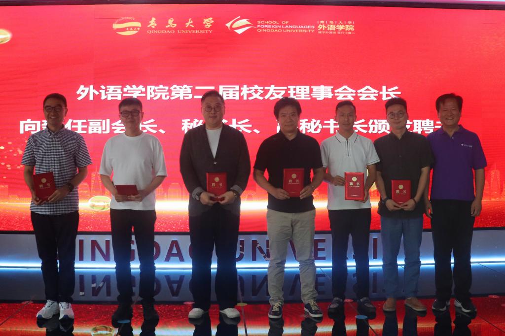 大会在庄严的青大校歌中拉开帷幕。党委书记陈崇研代表校友会作“情感融入朋辈育人 双向奔赴共促发展”校友工作报告,回顾了外语学院校友工作成果。