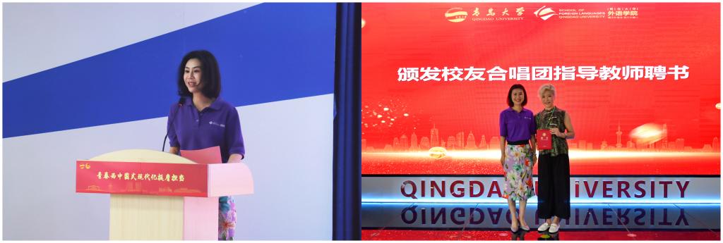 合唱团团长于苗介绍了我院“iSTEP梦想合唱团”十年发展历程及新成立的“iSTEP启梦校友合唱团”建设情况,并为青岛市合唱协会副秘书长古小溪颁发校友合唱团指导教师聘书。
