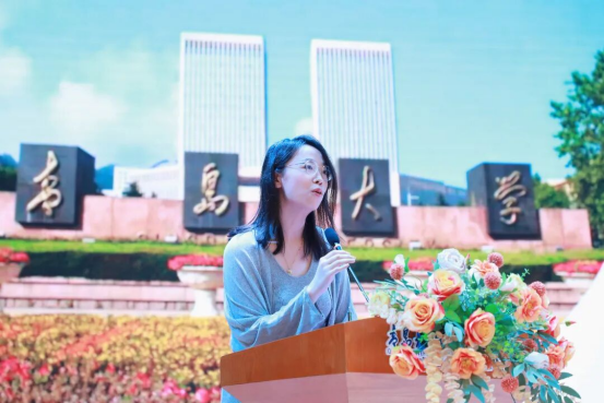 教师代表马一凡结合实例,指出具备情感交流能力与跨文化沟通能力的外语人才有着不可替代的价值,进一步坚定了同学们加强专业学习的信念。同时,她提醒新生要夯实语言基本功、提升沟通合作能力、学会承担责任、合理规划职业方向,并对新生的未来规划和发展表达了最诚挚的祝福。
